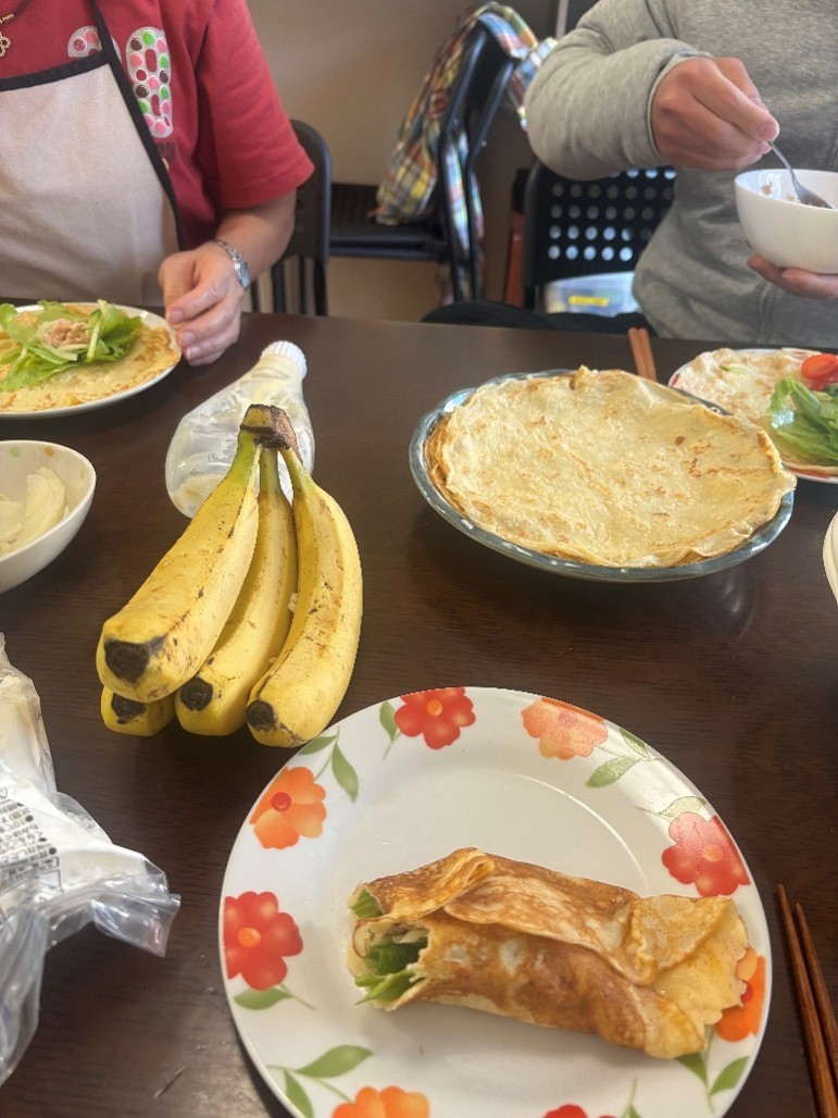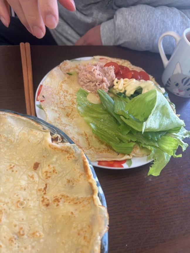 土日はいつも家に帰るメンバーが、寮に残ることになったのでお昼ご飯はクレープパーティーをしました。